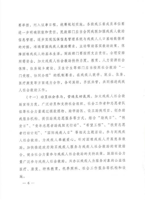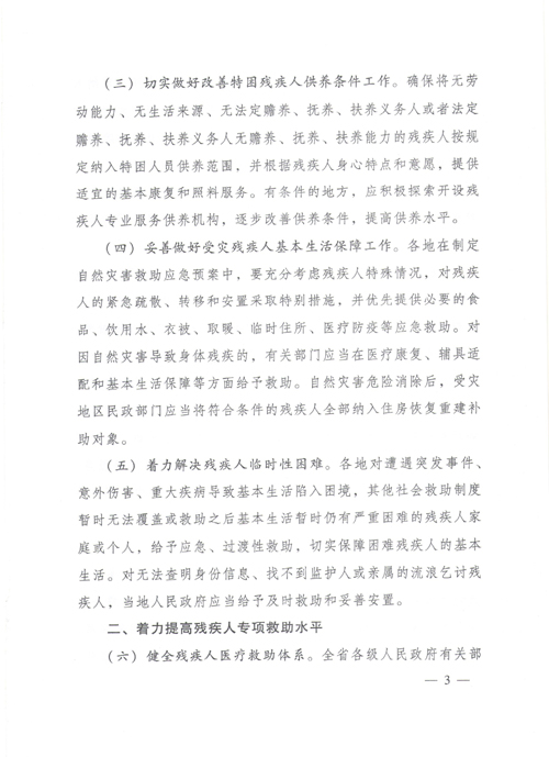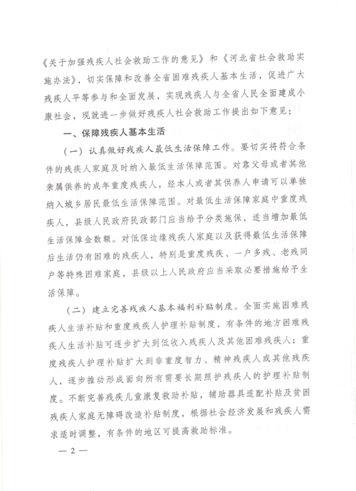 关于进一步做好残疾人社会救助工作的实施意见