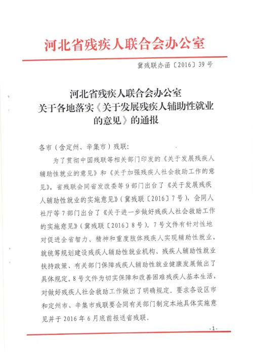 关于各地落实《关于发展残疾人辅助性就业的意见》的通报