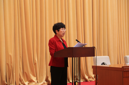 图为省残联党组书记、理事长朱立杰作工作报告