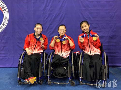 河北运动员李红燕除获得女子WH1级单打金牌外,还与河北另外一名队员杨帆搭档,共同收获了女子WH1-WH2级双打金牌。此外,在女子WH2级单打决赛中,河北年仅13岁的小将刘禹彤击败来自山东的队友徐婷婷,拿下一枚金牌。