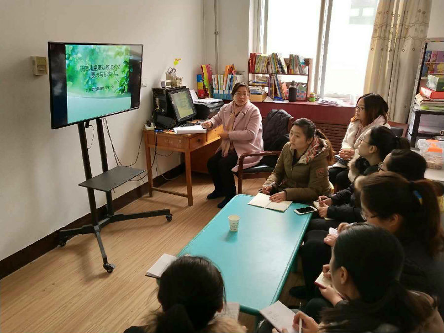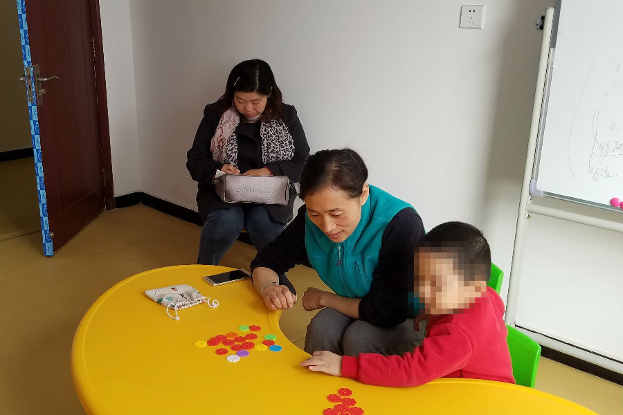 图为省残疾人康复指导中心维英老师在石家庄裕华区语训特殊教育培学校入班听课老师