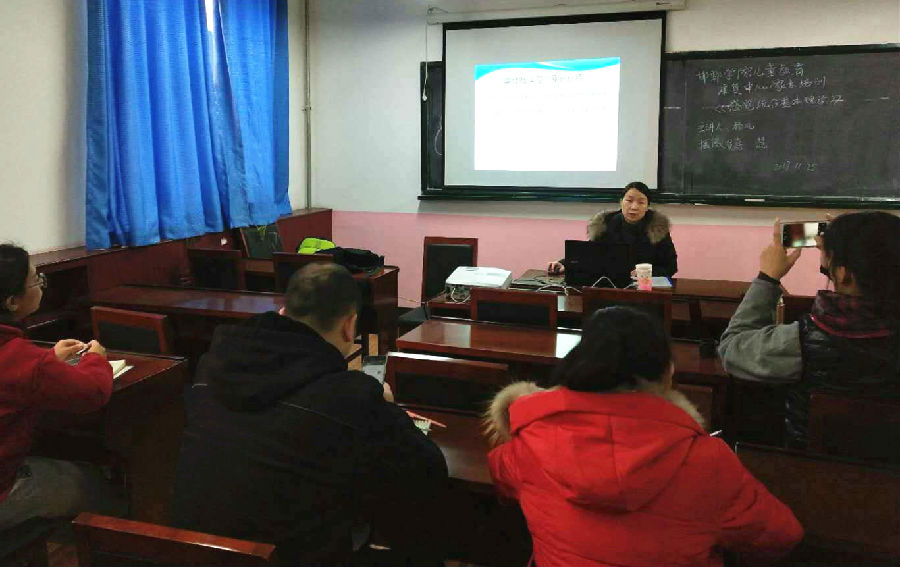 图为省残疾人康复指导中心樊春霞老师在邯郸学院授课