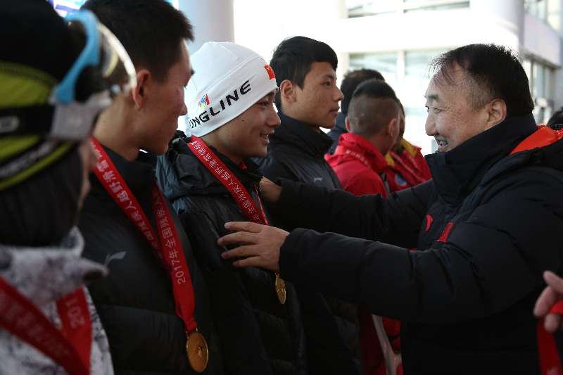 图为2022年冬奥会和冬残奥会组委会体育部副部长杨金奎为我省获奖运动员颁奖