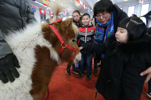 图为孩子们与俱乐部中的马匹进行快乐互动