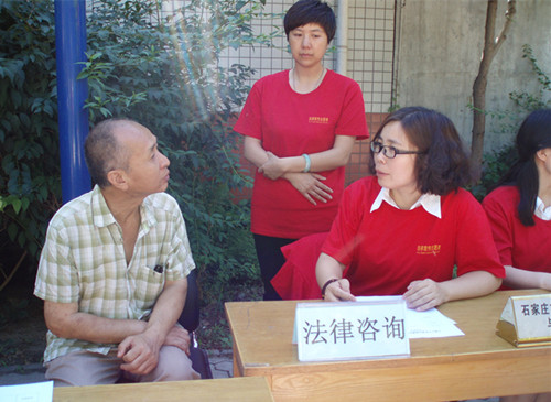 6月24日上午,智诚公益律师团队一行4人,与石家庄市残联和桥西区残联的工作人员,一起来到泰华街社区居委会,进行了法律宣传、咨询活动,拉开了河北省法律援助月法律进社区系列援助活动的序幕。