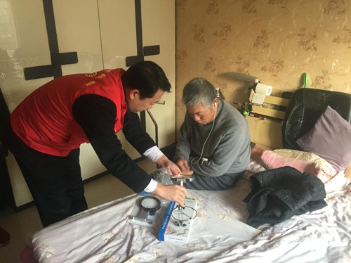 12月2日上午,河北省廊坊市残联志愿服务队以“国际残疾人日”为契机,走进廊坊市广阳区周各庄社区开展以“点亮微心愿”为主题的志愿服务活动,入户为残疾人送去辅助器具,并向他们宣讲党的十九大重要精神。