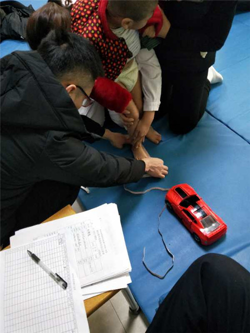 12月14日上午,区残联邀请邯郸市惠康假肢有限公司专业技师,到永年区妇幼医院、中医院为贫困脑瘫儿童进行矫形器装配筛查,技术人员为符合安装矫形器条件的20名脑瘫儿童,根据他们的身体状况以及需要矫正的部位,对其进行测量、取模。通过矫形器的装配,使其脑瘫儿童纠正异常,改善步态,从而达到更好的康复效果。