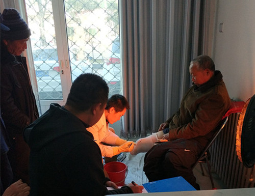 图为假肢取模现场