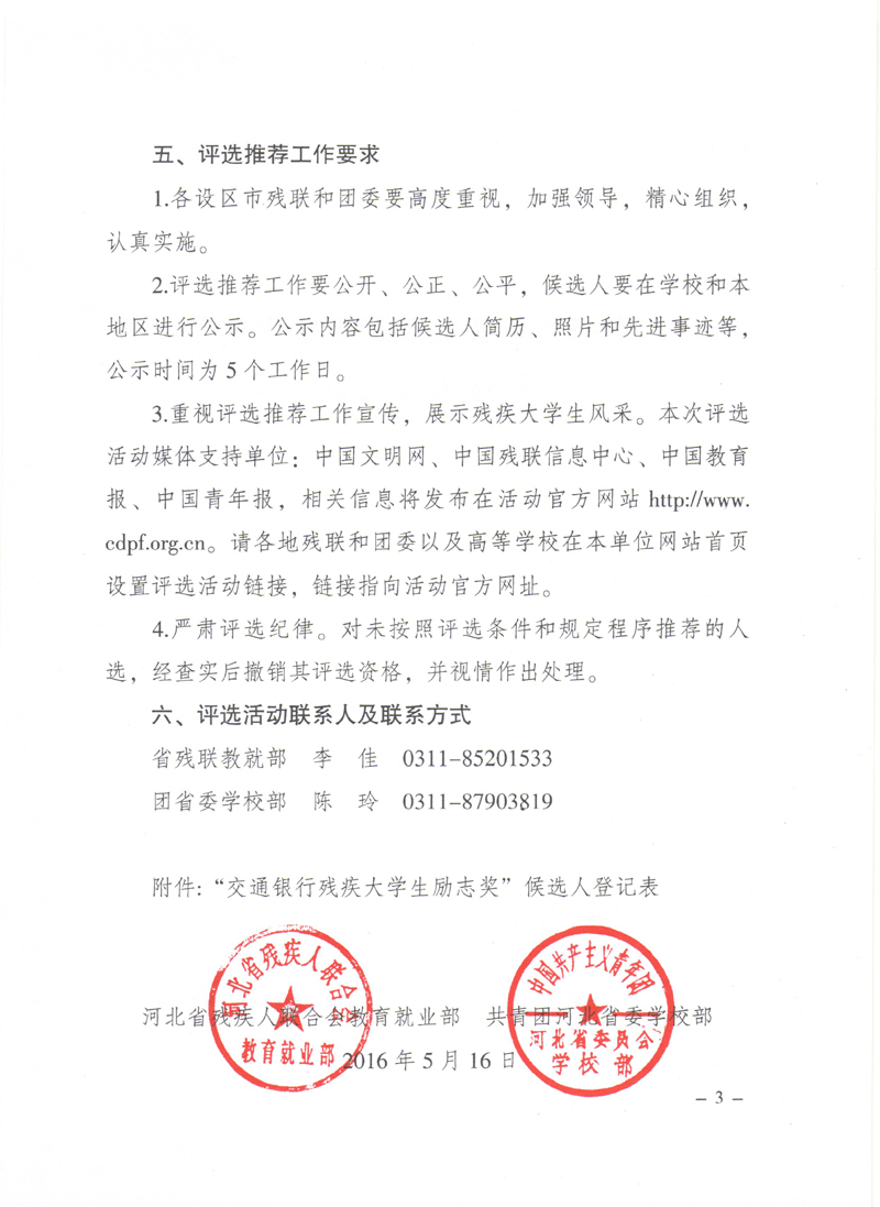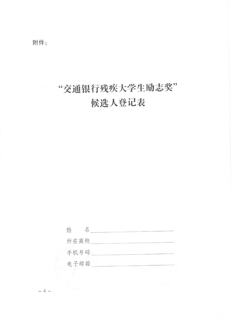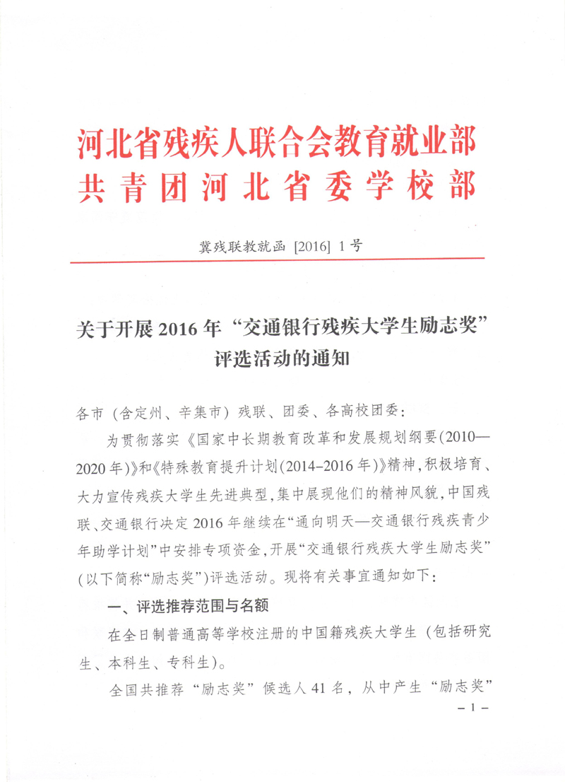 关于开展2016年“交通银行残疾大学生励志奖”评选活动的通知