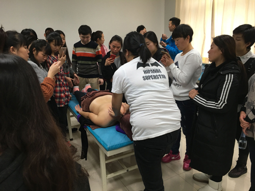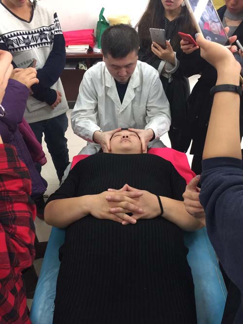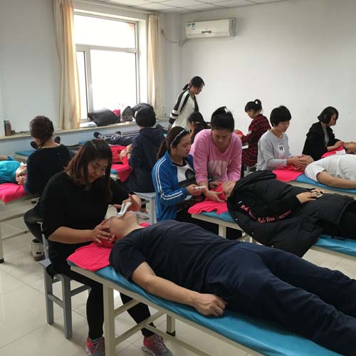 图为学员正在训练美容养生保健
