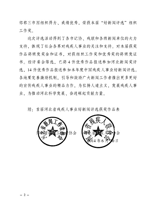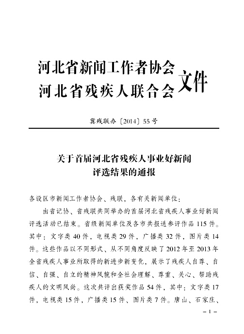 关于首届河北省残疾人事业好新闻评选结果的通报