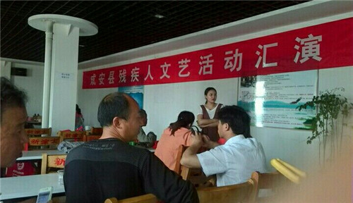 2017年5月10日下午,第二十七个全国助残日来临之际,成安县残联在县尚金宾馆成功举办"成安县2017年残疾人文艺汇演"。本次文艺汇演展现了我县残疾人特殊艺术工作成绩,展示了残疾人的独特艺术魅力和生命顽强之美,展现了残疾人自强不息的奋斗精神和丰富的生活情趣,促进了我县残疾人文艺事业的发展。