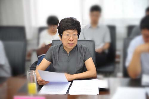 图为省残联党组书记、理事长朱立杰主持会议并总结发言