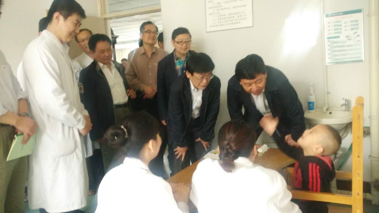 图为调研督导组一行在邯郸明仁医院与残疾儿童亲切交流
