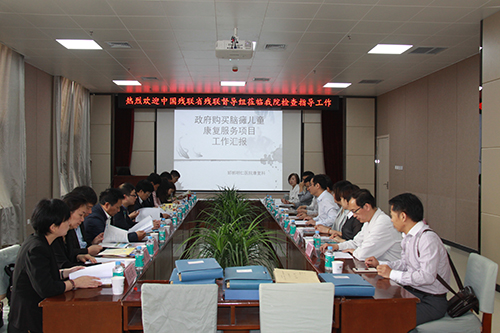 督导调研组一行首先听取了我省的情况汇报,并与项目负责同志进行了面对面的提问与交流。随后,督导调研组到邯郸市残联、邯郸明仁医院、邯郸学院儿童教育康复中心进行了实地调研,通过听取汇报、调阅政府购买服务资料、查阅受助对象档案、与残疾儿童及家长面对面交流等方式,了解了典型试点项目的组织领导情况、实施情况、绩效管理情况、转移支付资金分配执行和绩效评价情况。